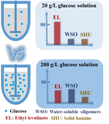 生物質(zhì)化工團(tuán)隊(duì)在生物質(zhì)催化轉(zhuǎn)化制備能源化學(xué)品乙酰丙酸酯方面持續(xù)開展了近十年的應(yīng)用基礎(chǔ)研究,創(chuàng)建了纖維素/半纖維素及其糖單元催化醇解定向制備乙酰丙酸酯的系列理論及技術(shù)體系,先后獲得4項(xiàng)國(guó)家自然科學(xué)基金項(xiàng)目的資助,相關(guān)成果在國(guó)際權(quán)威SCI期刊發(fā)表學(xué)術(shù)論文30余篇,總被引用1500余次,成套技術(shù)實(shí)現(xiàn)噸級(jí)規(guī)模中試生產(chǎn)。目前生物質(zhì)基乙酰丙酸酯的制備仍存在原料利用率低、能耗高等瓶頸問題,生產(chǎn)成本無(wú)法完全與石油基化學(xué)品相競(jìng)爭(zhēng)。高底物濃度反應(yīng)無(wú)疑是解決上述問題的契機(jī),有望全面提升生產(chǎn)過程效益,利于工業(yè)化生產(chǎn)。