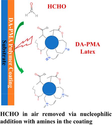 甲醛(HCHO)是一種強(qiáng)致癌物質(zhì),也是室內(nèi)裝修最常見的有機(jī)污染物之一,如何高效脫除HCHO已成為近年來社會(huì)關(guān)注的焦點(diǎn)。在丙烯酸樹脂基(PMA)涂料中添加有機(jī)胺分子可以實(shí)現(xiàn)對(duì)室內(nèi)HCHO的有效去除。但是,有機(jī)胺分子均具有毒性,涂料成膜會(huì)導(dǎo)致物理混合的有機(jī)胺結(jié)晶析出,從而對(duì)室內(nèi)環(huán)境造成二次污染,危害人體健康。化學(xué)工程學(xué)院磷化工團(tuán)隊(duì)基于先前的除甲醛涂料研究工作,提出將有機(jī)胺單體接枝到丙烯酸樹脂上,制備了胺基改性水性丙烯酸樹脂,并以其為成膜基質(zhì)制備水性功能涂料,實(shí)現(xiàn)對(duì)甲醛的高效去除。