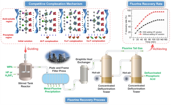 近日,昆明理工大學(xué)化學(xué)工程學(xué)院磷化工團(tuán)隊(duì)聯(lián)合國(guó)家磷資源技術(shù)開發(fā)利用工程技術(shù)研究中心,從氟的化學(xué)原理開始創(chuàng)新技術(shù)攻關(guān),通過大量的實(shí)驗(yàn)研究揭示了氟的賦存形態(tài)與金屬離子(Al3+、Fe3+、Ca2+和Mg2+)間的競(jìng)爭(zhēng)絡(luò)合機(jī)制,進(jìn)而“吃透”氟在生產(chǎn)工藝中的逸出機(jī)理,再結(jié)合生產(chǎn)工藝進(jìn)行技術(shù)攻關(guān),并將成果轉(zhuǎn)化應(yīng)用于工業(yè)生產(chǎn)工藝流程中。創(chuàng)新性提出“萃取氟回收”技術(shù)、“減壓濃縮”氟回收技術(shù)、“串級(jí)汽提氟”回收技術(shù),實(shí)現(xiàn)氟資源高效回收,回收率高達(dá)95%以上。