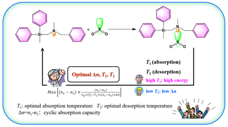 分子分離與催化團(tuán)隊(duì)采用了創(chuàng)新的方法,通過合成低共熔溶劑(DESs)和胺烴基硅烷吸收劑,制備了具有卓越H2S和SO2吸收性能的吸收劑。這些吸收劑不僅在低分壓下表現(xiàn)出出色的吸收能力,還具有高熱穩(wěn)定性和低粘度的特點(diǎn),克服了傳統(tǒng)方法的局限性。研究團(tuán)隊(duì)還通過熱力學(xué)和動(dòng)力學(xué)分析,深入揭示了吸收劑性能與分子結(jié)構(gòu)之間的關(guān)系,這一系列研究為酸性氣體吸收劑的設(shè)計(jì)與合成以及能耗分析等方面提供了全新思路。