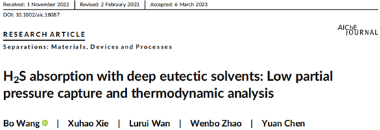 近日,昆明理工大學(xué)化學(xué)工程學(xué)院分子分離與催化趙文波教授團(tuán)隊(duì)在酸性氣體捕集領(lǐng)域取得創(chuàng)新突破。相關(guān)研究成果以“H2S absorption with deep eutectic solvents: Low partial pressure capture and thermodynamic analysis”和“The absorption behavior of SO2 by amine alkyl organosilicon: Experimental analysis and numerical simulation”為題分別發(fā)表在化工領(lǐng)域國(guó)際權(quán)威學(xué)術(shù)期刊AIChE Journal和化工一區(qū)TOP學(xué)術(shù)期刊Chemical Engineering Journal上(論文鏈接:https://doi.org/10.1002/aic.18087;https://doi.org/10.1016/j.cej.2023.145345)。