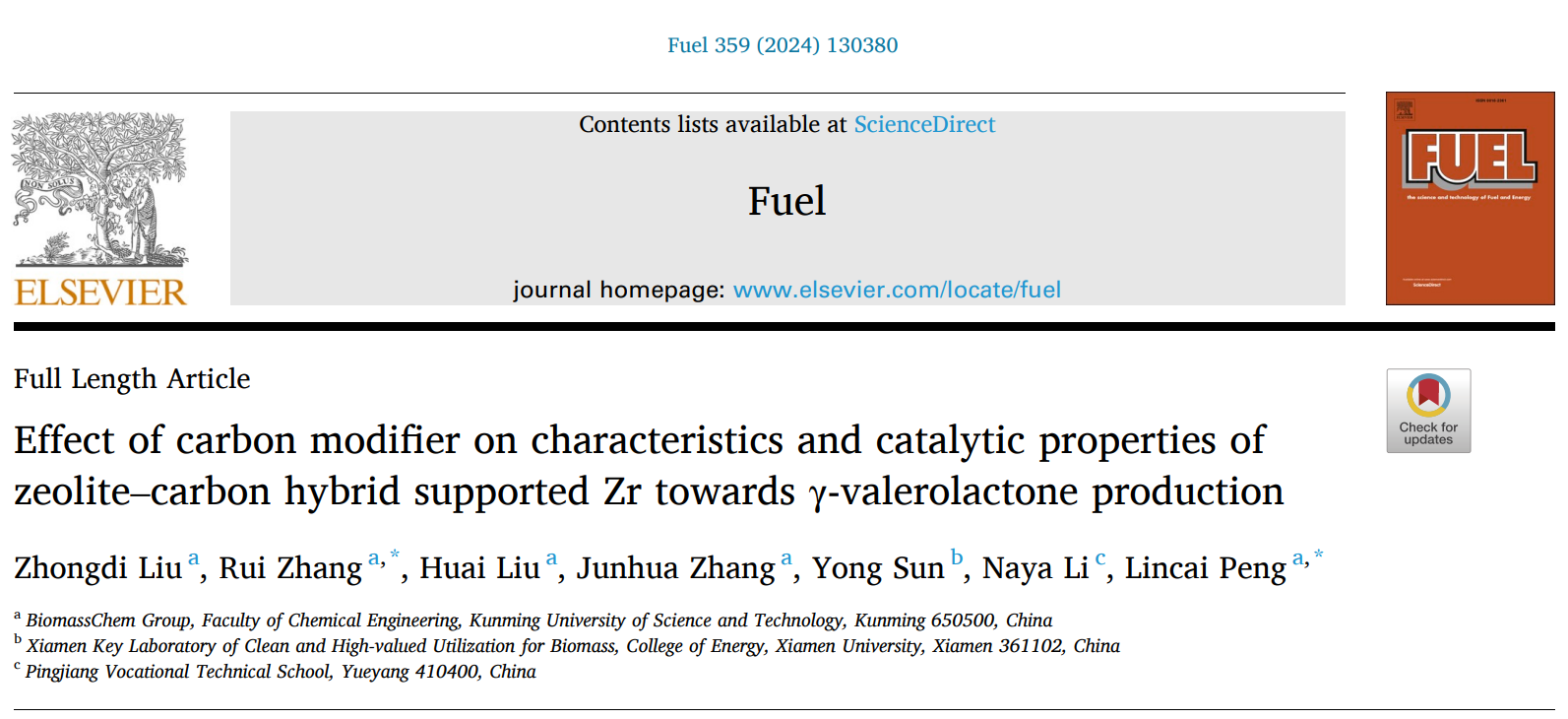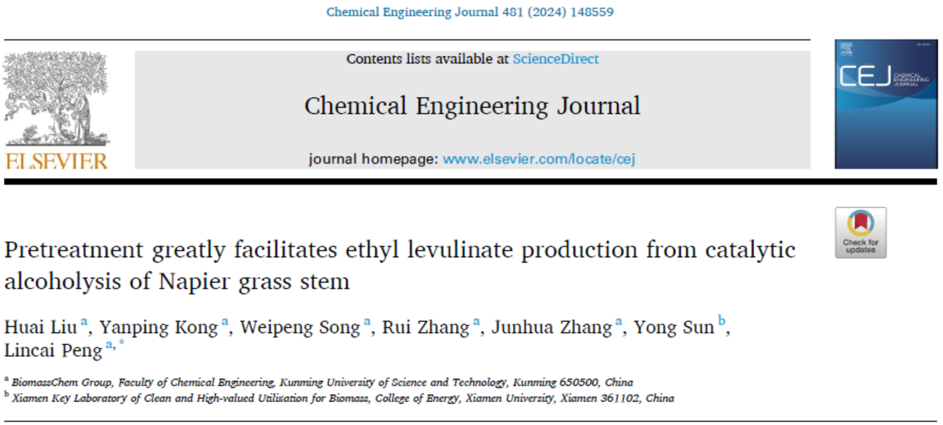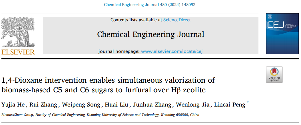 生物質(zhì)是唯一可替代化石原料獲取液體燃料和有機(jī)化學(xué)品的可再生資源,實現(xiàn)其高效轉(zhuǎn)化及規(guī)模應(yīng)用將有助于緩解當(dāng)前能源危機(jī)、改善氣候環(huán)境等問題,對經(jīng)濟(jì)社會的可持續(xù)低碳發(fā)展具有重要戰(zhàn)略意義。利用生物質(zhì)化學(xué)催化可獲取多元醇、呋喃類化合物、有機(jī)酸及其酯類衍生物等基礎(chǔ)平臺化學(xué)品,它們是連接生物質(zhì)原料和下游高附加值產(chǎn)品的橋梁,具有廣泛的工業(yè)應(yīng)用價值。近日,生物質(zhì)化工彭林才教授團(tuán)隊在5-羥甲基糠醛、糠醛、乙酰丙酸酯、γ-戊內(nèi)酯等平臺化合物制備方面取得系列重要研究進(jìn)展,相關(guān)研究成果發(fā)表在化工領(lǐng)域國際TOP學(xué)術(shù)期刊Chemical Engineering Journal(2)、ACS Sustainable Chemistry & Engineering、Fuel上,論文第一單位均為昆明理工大學(xué)化學(xué)工程學(xué)院。