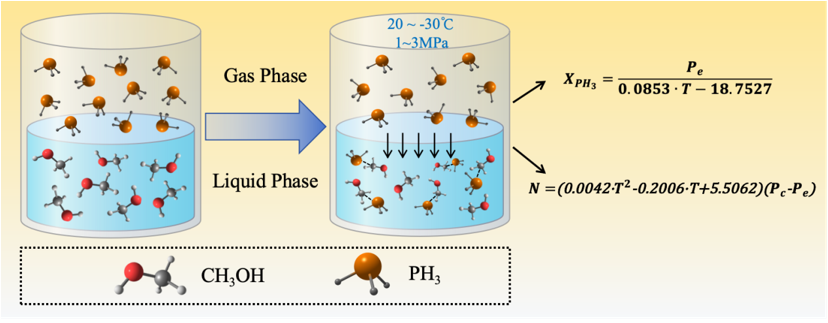 磷化氫是一種無(wú)色、劇毒氣體,廣泛產(chǎn)生于稻田耕作、垃圾填埋、廢水處理、工業(yè)生產(chǎn)等過(guò)程,其排放會(huì)造成嚴(yán)重的環(huán)境污染;此外,對(duì)于黃磷行業(yè),磷化氫的凈化直接制約了黃磷尾氣的資源化利用,開(kāi)發(fā)低成本的脫磷技術(shù)具有重要的社會(huì)和環(huán)境意義。鑒于此,本團(tuán)隊(duì)開(kāi)發(fā)了甲醇吸收劑低溫、高壓凈化磷化氫的方法,旨在實(shí)現(xiàn)污染物凈化和磷資源回收的雙重目的。論文重點(diǎn)研究了溫度和總氣壓對(duì)磷化氫的溶解度和吸收速率的影響,建立了溶解度方程和動(dòng)力學(xué)方程。基于FT-IR、31P NMR和氣相色譜的表征,確定了甲醇吸收磷化氫是一個(gè)物理吸收過(guò)程。此外,經(jīng)過(guò)6次再生循環(huán)后,甲醇的吸收能力僅下降了4.27%。甲醇在吸收磷化氫過(guò)程中的焓變相對(duì)較小,再生性能優(yōu)越,表明甲醇是一種節(jié)能且可再生的磷化氫吸收劑。研究結(jié)果對(duì)于低溫甲醇洗脫磷工藝設(shè)計(jì)具有重要的指導(dǎo)意義。