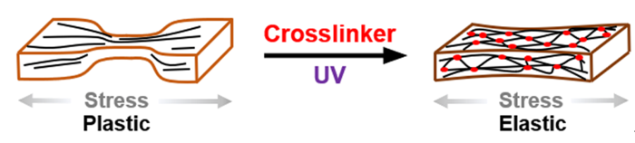 電子材料的彈性化為可穿戴設(shè)備領(lǐng)域帶來了新的機(jī)遇。鐵電體類似于半導(dǎo)體和電極,是可穿戴電子產(chǎn)品中的關(guān)鍵材料。但可穿戴設(shè)備的發(fā)展需要鐵電體在內(nèi)的這些電子材料能夠承受大幅(達(dá)到50~80%)且頻繁的應(yīng)變,同時(shí)要求其保持良好的電學(xué)性能。因此,鐵電材料的彈性化成為一個(gè)極具前景的方向。與經(jīng)典鐵電體類似,弛豫鐵電體表現(xiàn)出多功能性,包括熱釋電性、壓電性和介電性等,為開發(fā)和應(yīng)用為高性能驅(qū)動(dòng)器和傳感器提供了廣闊的前景。然而,無機(jī)弛豫鐵電體表現(xiàn)出脆性,而有機(jī)弛豫鐵電性表現(xiàn)出塑性,均無彈性。弛豫鐵電體作為現(xiàn)代電子設(shè)備中的關(guān)鍵材料,這一問題將限制了它們在柔彈性電子產(chǎn)品中的應(yīng)用。中國科學(xué)院寧波材料技術(shù)與工程研究所李潤偉研究員和胡本林研究員首次提出了“彈性鐵電體”的概念(Science, 2023, 381: 540–544),通過精準(zhǔn)微交聯(lián)實(shí)現(xiàn)了鐵電體結(jié)晶度和回彈性之間的微妙平衡。然而,該本征彈性鐵電體的實(shí)現(xiàn)條件需要高溫?zé)峤宦?lián),在一定程度上限制了彈性鐵電材料的應(yīng)用前景。
