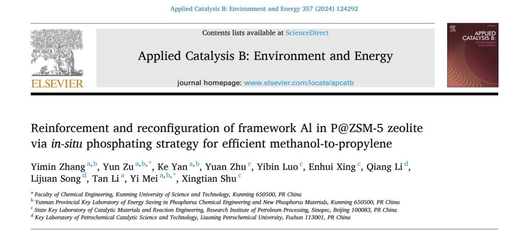 近日,化學(xué)工程學(xué)院磷化工團(tuán)隊(duì)聯(lián)合中石化北京石油化工科學(xué)研究院舒興田院士團(tuán)隊(duì)圍繞含磷分子篩催化劑設(shè)計(jì)的最新研究成果“Reinforcement and reconfiguration of framework Al in P@ZSM-5 zeolite via in-situ phosphating strategy for efficient methanol-to-propylene”在環(huán)境和能源催化領(lǐng)域著名學(xué)術(shù)期刊Applied Catalysis B: Environment and Energy(IF=22.1)發(fā)表。我院與石科院聯(lián)合培養(yǎng)博士研究生張宜民為論文第一作者,祖運(yùn)副教授和梅毅教授為共同通訊作者。