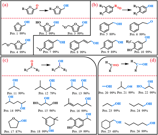 糠醛是工業(yè)成熟的大宗生物基平臺(tái)化合物,可由木質(zhì)纖維原料(如玉米芯、蔗渣)半纖維素經(jīng)水解和脫水制備。2023年,全球糠醛年產(chǎn)量超過30萬噸,市場(chǎng)規(guī)模達(dá)5.95億美元,而我國已成為全球最大的糠醛生產(chǎn)和出口國,產(chǎn)能約占全球的70%。目前,全球約80%的糠醛都用于制備糠醇,它是一種重要的生物基工業(yè)原料,主要用于生產(chǎn)糠醛樹脂、呋喃樹脂、糠醇-尿醛樹脂、酚醛樹脂等,同時(shí)在染料、合成纖維、橡膠、農(nóng)藥和鑄造等工業(yè)領(lǐng)域有廣泛應(yīng)用。目前糠醇工業(yè)化生產(chǎn)主要通過糠醛氣相或液相催化加氫制得,反應(yīng)通常需在高壓氫氣條件下或有機(jī)溶劑中進(jìn)行,生產(chǎn)過程效率有待進(jìn)一步提升。