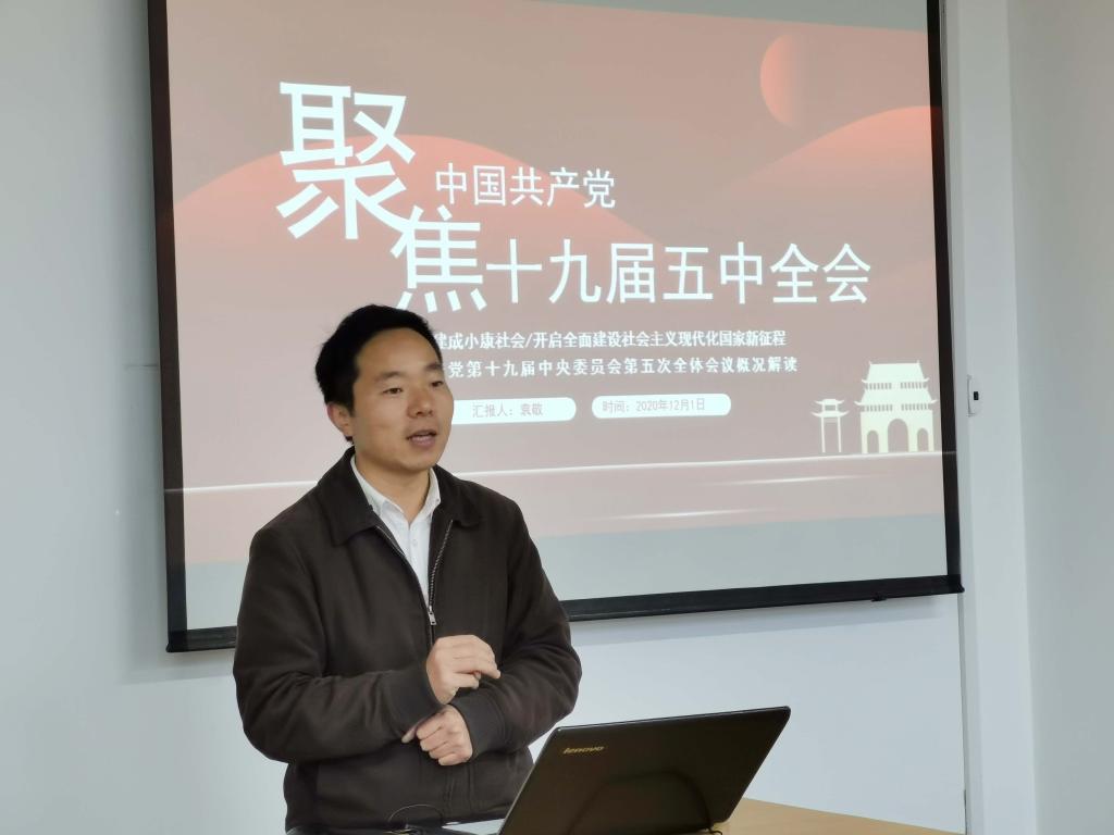 2020年12月1日17:30,化學工程學院學生第三黨支部在化工樓開展“學習黨的十九屆五中全會精神”主題黨課,此次黨課由黨支部書記袁敬老師主講,支部黨員參與了學習。