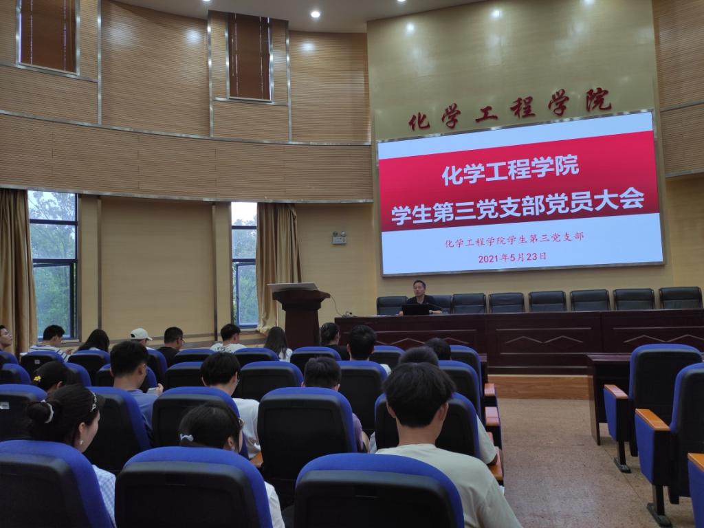 2021年5月23日19:00,化學(xué)工程學(xué)院學(xué)生第三黨支部在化工樓100報(bào)告廳召開支部黨員大會(huì)。大會(huì)由支部書記袁敬老師主持,全體黨員和16名發(fā)展對(duì)象參加了會(huì)議。