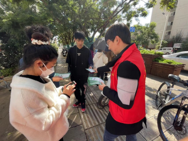 教師黨員走進(jìn)社區(qū)作為宣傳員,向社區(qū)居民宣傳低碳生活理念,普及應(yīng)對(duì)氣候變化知識(shí),講解“碳達(dá)峰”“碳中和”相關(guān)政策措施。同時(shí)向來往社區(qū)居民發(fā)放宣傳冊(cè)、環(huán)保購(gòu)物袋等宣傳品,號(hào)召大家身體力行,從選擇簡(jiǎn)約適度、綠色低碳的生活方式做起。