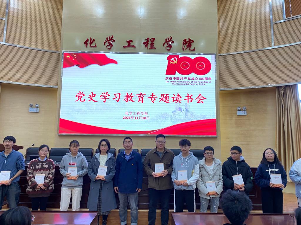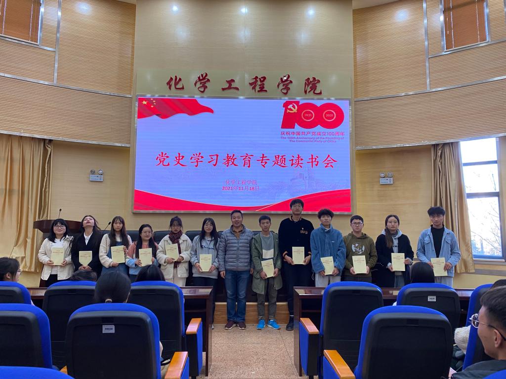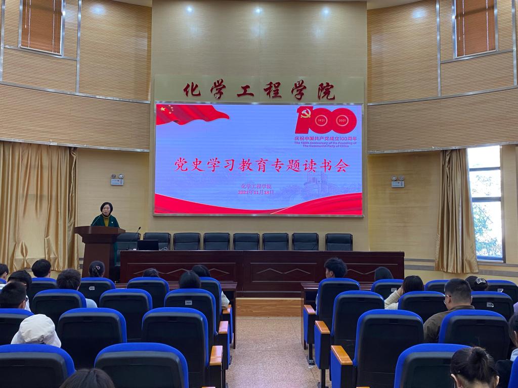 為營(yíng)造黨史學(xué)習(xí)濃厚氛圍,進(jìn)一步推動(dòng)黨史學(xué)習(xí)教育,2021年11月22日,化學(xué)工程學(xué)院在化工樓100報(bào)告廳開(kāi)展了“黨史學(xué)習(xí)教育專(zhuān)題讀書(shū)會(huì)”活動(dòng)。學(xué)院黨委書(shū)記李云燕同志、學(xué)院黨委委員常靜華同志、學(xué)生第二黨支部書(shū)記田世垚同志、學(xué)生第三黨支部書(shū)記袁敬同志和部分學(xué)生黨員參加了本次讀書(shū)會(huì)。
