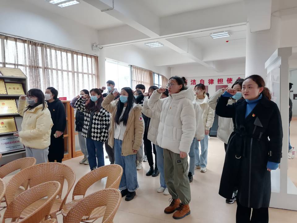 大會(huì)在莊嚴(yán)的《國(guó)際歌》中拉開(kāi)了帷幕,接著院黨委副書(shū)記寧玲同志對(duì)本次新黨員入黨宣誓大會(huì)進(jìn)行致辭。隨后,新發(fā)展黨員宣誓、老黨員重溫入黨誓詞,在領(lǐng)誓人袁梓婷的帶領(lǐng)下,面向黨旗、莊嚴(yán)宣誓。宣誓完畢后,新黨員劉夢(mèng)萍同志向黨組織表決心,表示今后要不斷努力學(xué)習(xí)提升自己,堅(jiān)定理想信念,努力成為民族復(fù)興重任的時(shí)代新人。