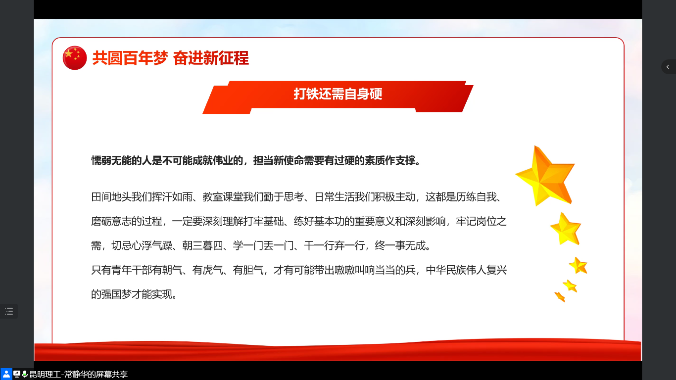 2022年3月14日晚,化學(xué)工程學(xué)院學(xué)生第三黨支部開展了“聚焦全國兩會(huì) 一起向未來”線上黨課,專題學(xué)習(xí)了2022年全國“兩會(huì)”精神。黨支部全體黨員、入黨積極分子參加了學(xué)習(xí),主講嘉賓為學(xué)院黨委委員、學(xué)院教工第三黨支部書記常靜華同志。