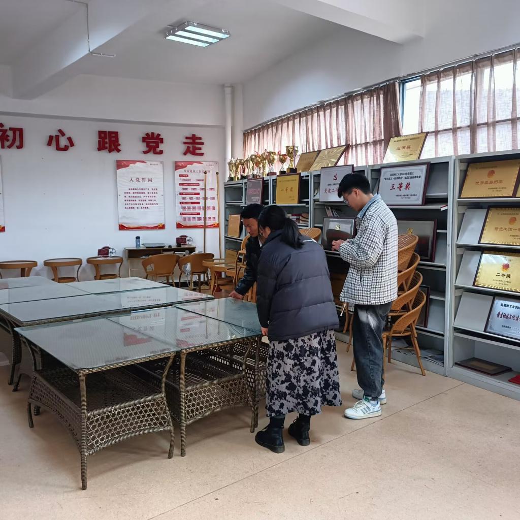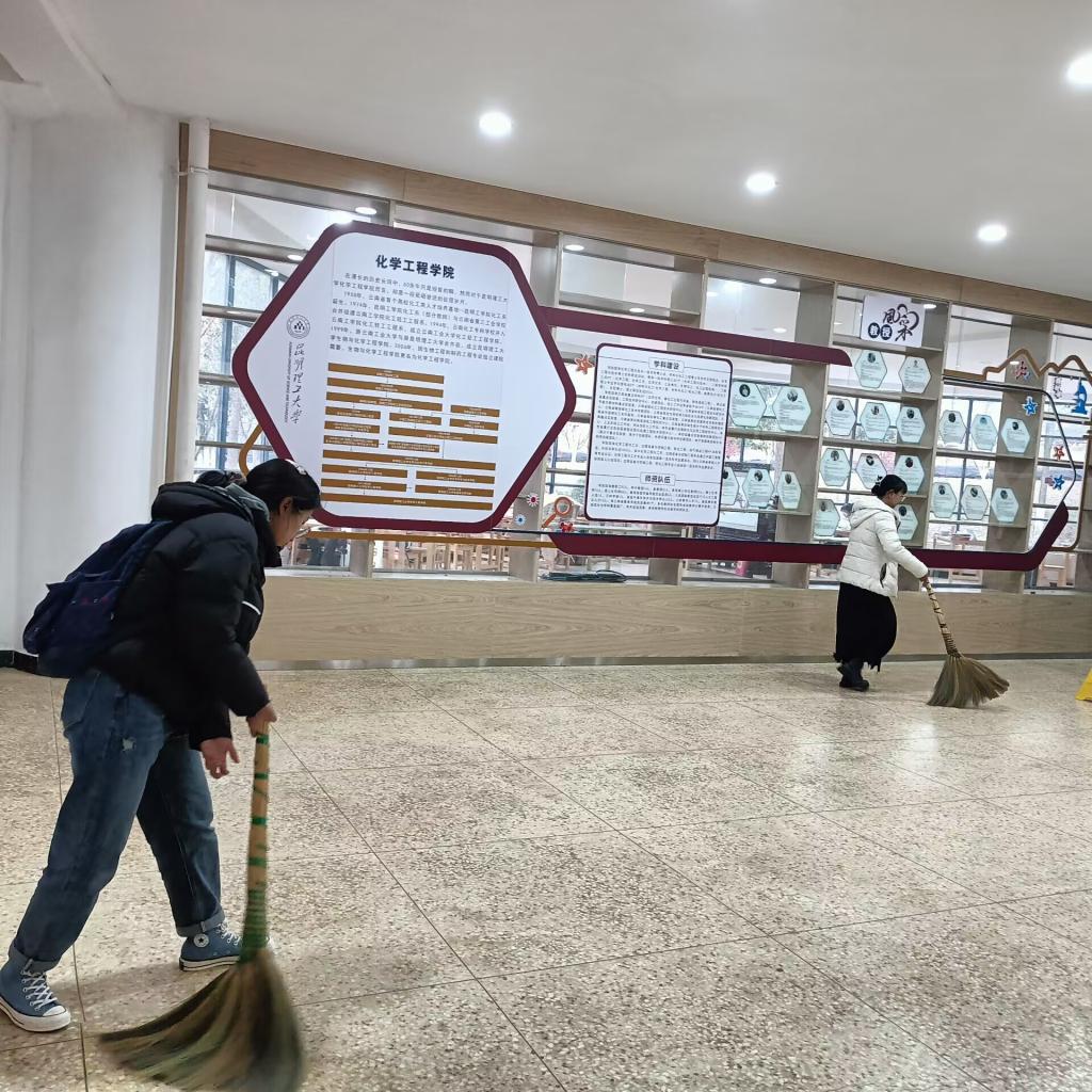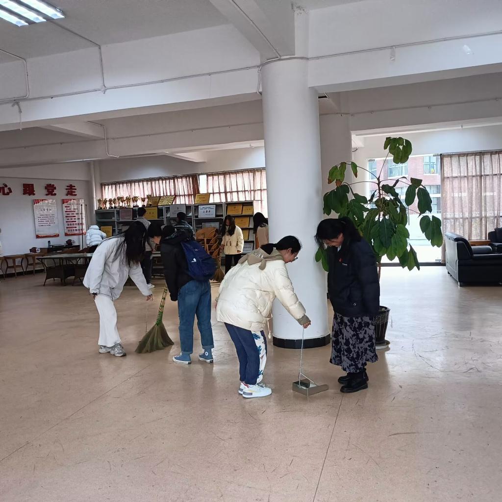 會后,學生第四黨支部黨員,開學學雷鋒實踐活動,黨員同志共同打掃化工樓樓梯、大廳、并整理桌椅。