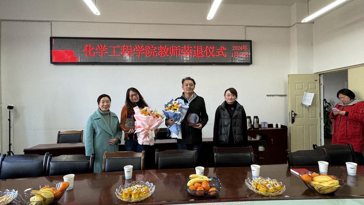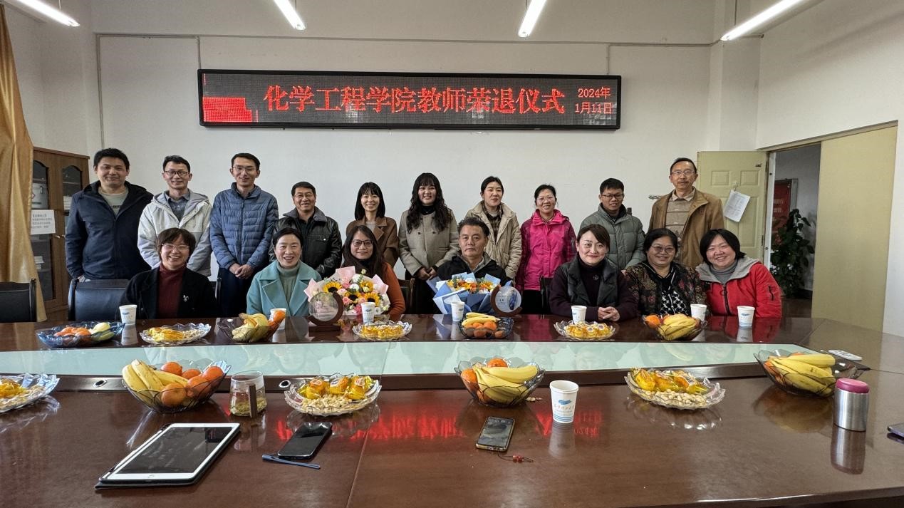 為感謝退休教師多年來的辛勤付出,增強退休的榮譽感、儀式感和歸屬感,2024年1月11日下午,我院為顧麗莉和唐輝兩位老師舉辦了榮退儀式。院黨委書記李云燕、副書記寧玲、各科室代表、化工系教師代表參加了本次活動,榮退儀式由工會主席常靜華主持。