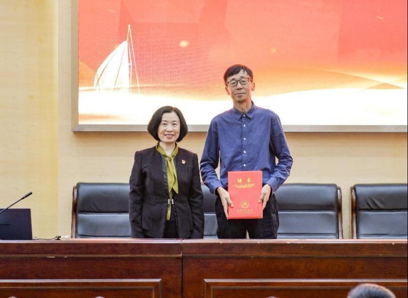 李云燕書記為客座教授邢愛民頒發(fā)聘書。