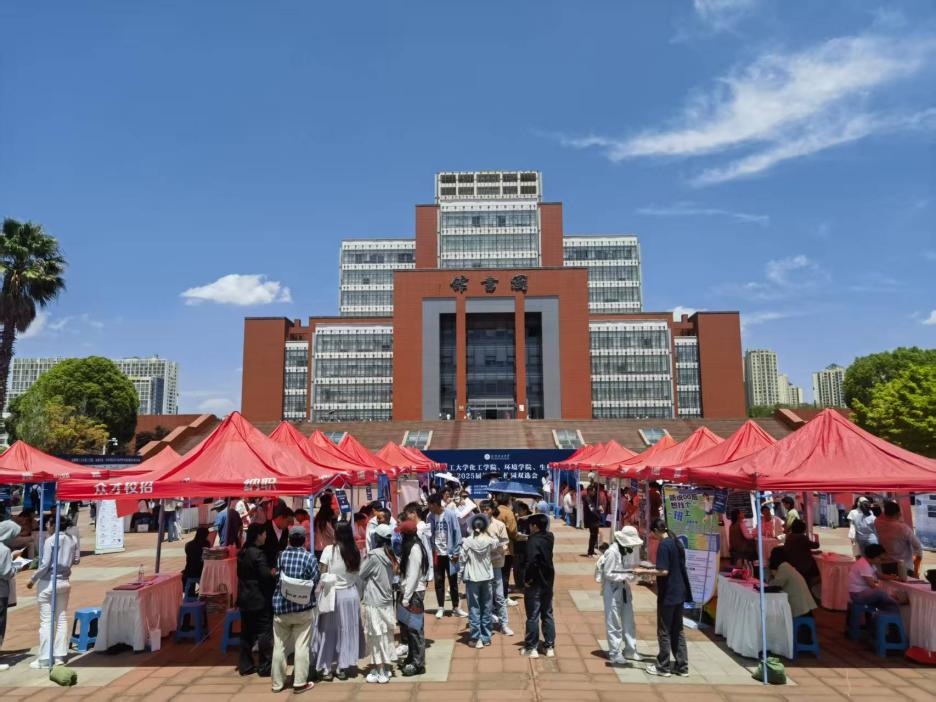 為進一步深化校企合作,切實推動 2025 屆畢業(yè)生實現(xiàn)高質(zhì)量就業(yè),昆明理工大學(xué)化學(xué)工程學(xué)院、環(huán)境科學(xué)與工程學(xué)院、生命科學(xué)與工程學(xué)院于 2025 年 5 月 8 日 13:30 - 16:30,在呈貢校區(qū)圖書館前廣場聯(lián)合舉辦了校園雙選會。此次雙選會吸引了眾多企業(yè)和畢業(yè)生積極參與。