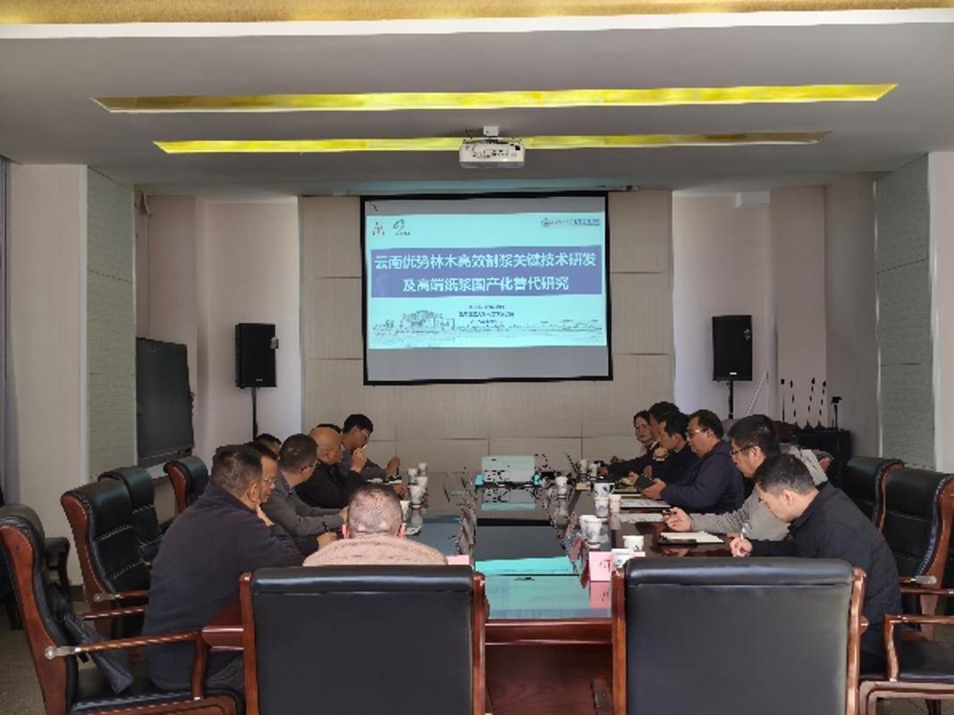 羅永明院長(zhǎng)對(duì)云南云景林紙股份有限公司和云南紅塔藍(lán)鷹紙業(yè)有限公司領(lǐng)導(dǎo)一行表示熱烈歡迎,并介紹了學(xué)院在學(xué)科建設(shè)、科學(xué)研究、人才培養(yǎng)等方面的發(fā)展情況與近年取得的主要成效。生物質(zhì)工程系主任張俊華教授作了題為“云南優(yōu)勢(shì)林木高效制漿關(guān)鍵技術(shù)研發(fā)及高端紙漿國產(chǎn)化替代研究”的項(xiàng)目報(bào)告。與會(huì)三方圍繞西南特色植物纖維高值化發(fā)展的合作路徑進(jìn)行了深入研討,一致認(rèn)為:結(jié)合云南區(qū)域植物資源稟賦與產(chǎn)業(yè)優(yōu)勢(shì),開展從原料到工藝的漿紙全鏈條技術(shù)攻關(guān)研發(fā),形成具有自主知識(shí)產(chǎn)權(quán)的核心技術(shù)體系,對(duì)保障相關(guān)產(chǎn)業(yè)供應(yīng)鏈安全、提升我國漿紙產(chǎn)業(yè)的核心競(jìng)爭(zhēng)力具有重要意義。